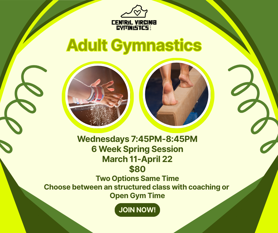 We are thrilled to announce that Central Virginia Gymnastics is now under new ownership! We are excited to introduce new programs and changes that will benefit all families. Join us for top-notch classes for all levels of gymnasts, taught by our well-trained staff in a safe environment.